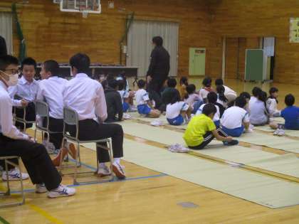 子供たちははじめて異なる学年の発表をみます。緊張感が漂っています。今までしてきたことを発揮できるために練習を重ねてきました。いよいよ始まります。