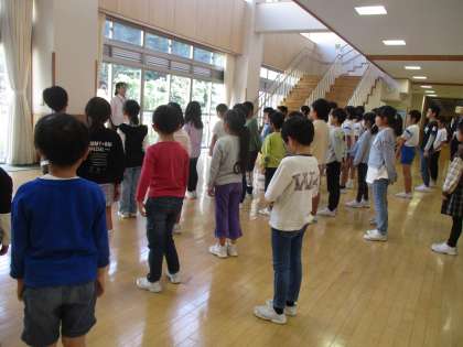 新しく着任された先生とはじめて顔を合わせました。子供たちは「よろしくお願いします」と大きな声であいさつしていました。