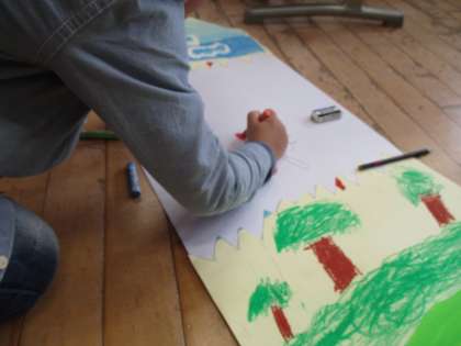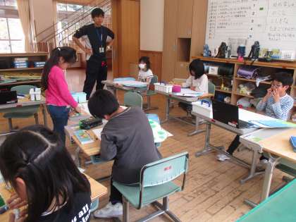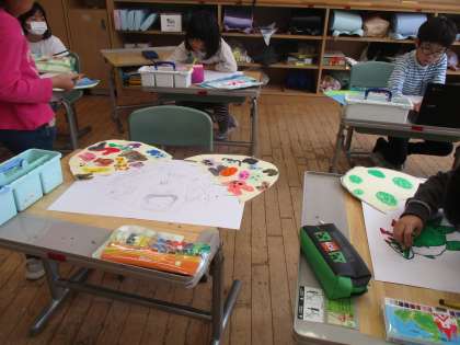 たまごが割れたら何が出てくるかな?トンボ、ドラゴン、地球など子供たちのアイディアがたくさん出てきました。