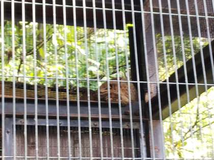 ツシマヤマネコです。一匹は気持ちよさそうにお昼寝、もう一匹は元気よく歩き回っていました。