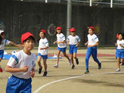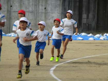 今月に入ってはじめてのチャレンジタイムでした。それぞれのペースで走っています。1周走る時間を決めて走る子や周数を多く走る子など様々です。