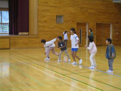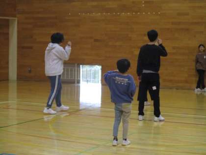 今日はスマイル班活動で「だるまさんが転んだ」が派生した遊びをしました。「だるまさんが鉛筆で絵を描いた」と言うと他の子供たち全員が絵を描く動作をします。とても微笑ましい光景でした。