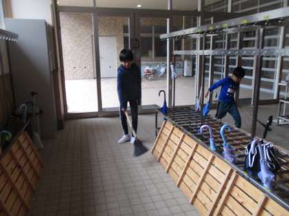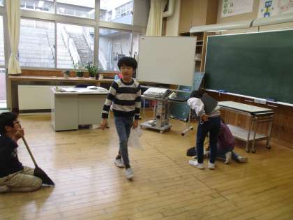 今日は5,6年生が校外学習のため、3,4年生が中心となって清掃の時間に取り組みました。教室から話し声が聞こえると、「話さないように取り組みましょう」と声をかけています。反省会もしっかり行いました。