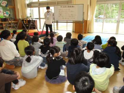 今日からフリーランニングスペースに鉄棒とマットが登場しました。安全に使用するように、みんなで約束を確認をしました。