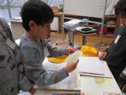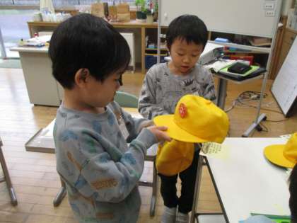 「ちきゅうまわり、出来るようになったよ」「補助付きで逆上がりができるようになったよ」安全帽子のバッジのシールが増えていきます。