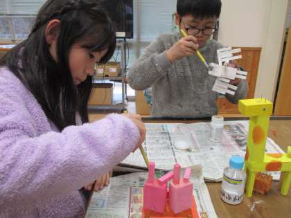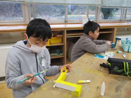 色をつけたり、ニスを塗ったりしました。完成目前です。