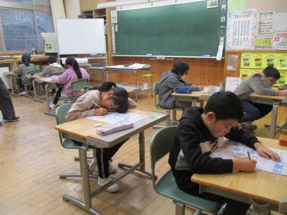 テストやプリントをすることによって2学期の学習が定着しているかを確かめます。見直しをしなくてはいけないところは冬休みに取り組んでいきます。