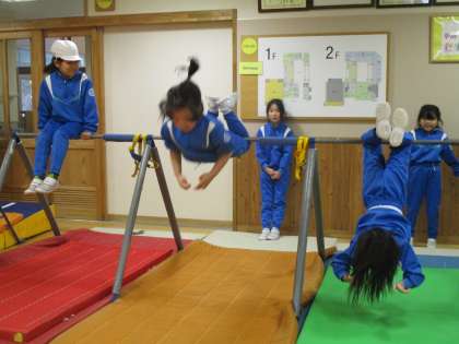 「手にマメが出来たよ」「ヒザの後ろが痛いよ」それでも子供たちは笑顔で技に挑戦します。楽しく取り組んでいる姿をみると他の子供たちも興味が出てきます。