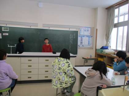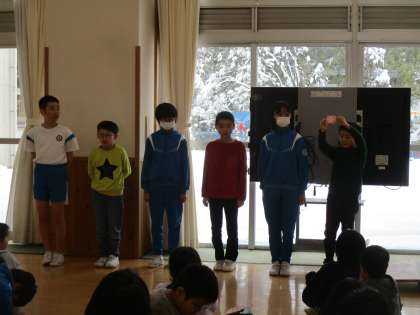 4,5年生を中心に卒業を祝う会の出し物を考えました。「去年と違う出し物にしよう」「感謝の気持ちを表す出し物って何だろう」スマイル班で話し合いが行われました。