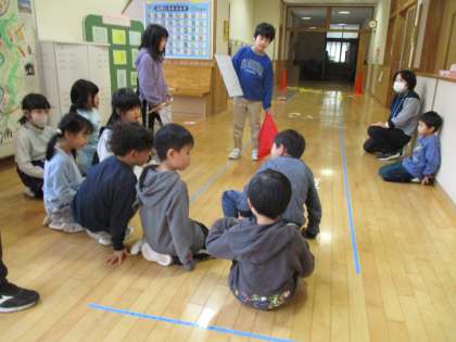 子供たちは保育所交流を通じて多くのことを学習しています。説明の仕方にも上手く伝わるように工夫しています。