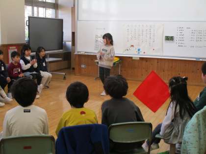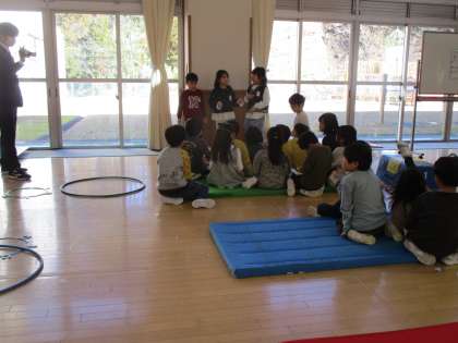 なぞなぞクイズ、得意技紹介、宝探し等もりだくさんの交流会となりました。「なんでそんなのできるの」「みつけたよ、お宝」保育所さんの元気な声も聞こえてきました。
