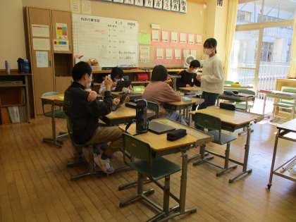 「NGワードゲームしているんです」仲良く遊んでいる4,5年生。その横でキーボードの練習をしている子供たちもいました。6年生は窓際で日なたぼっこをしている子もいました。今日の天気同様、子供たちは穏やかな気持ちで過ごしていました。