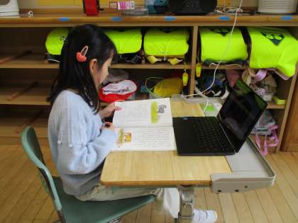 個人練習をしたあと、みんなで音読リレーです。今日のタイムは、昨日からグッと縮まりました。真剣な目差しに格好よさを感じます。
