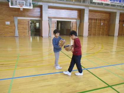 昼休み、1年生はグローブを使ってキャッチボールをしていました。ボールの投げ方、体の重心など4月から大きく成長しています。