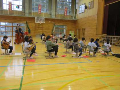 卒業式の練習が始まっています。入場曲を演奏するためのマンドリンの練習の様子です。