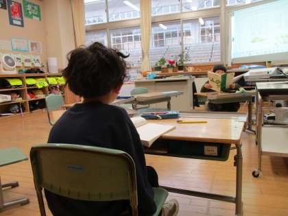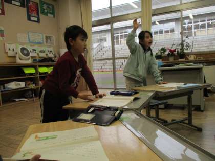 国語科の学習の様子です。話の内容を読みとることができてはじめて題名を考えることができます。子供たちは積極的に意見を出しています。