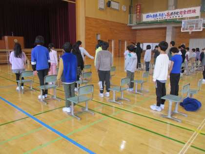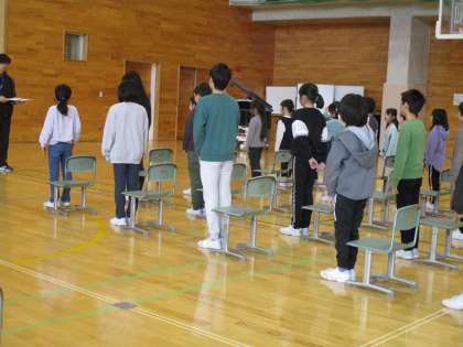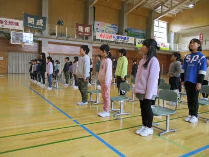 以前から門出の言葉を練習している子供たちは、他の子供たちにとってよいお手本になっていました。在校生にとってはじめての体育館練習。卒業生のことを思う気持ちが、一人一人の態度に表れていました。