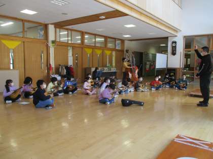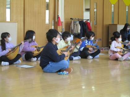 子供たちは卒業生が入場する場面でマンドリンを弾きます。練習にも熱が入ります。