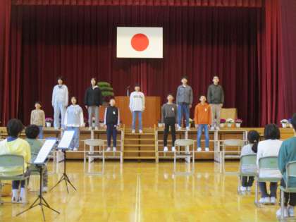 はじめて6年生の卒業の歌「絆」を全校で聴きました。本番にもう一度聴くことができます。次はどんな気持ちで聴くのでしょうか。