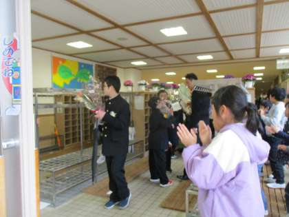 花道を通って行く卒業生。これからも皆さんの活躍が楽しみにしています。