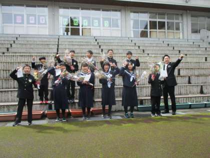 花道を通って行く卒業生。これからも皆さんの活躍が楽しみにしています。