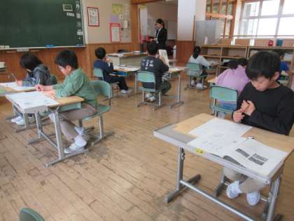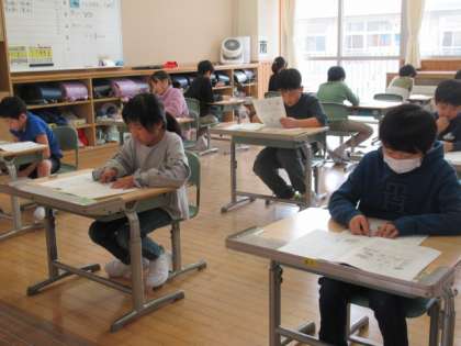 真剣に問題と向き合う子供たちです。よく読んで考えよう。