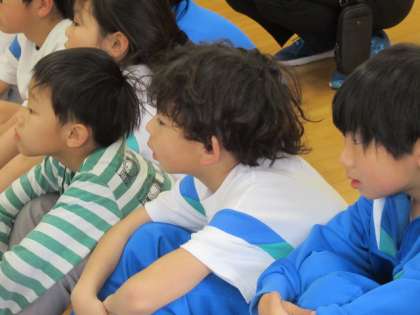 今朝は読書タイムです。下学年はボランティアの方の読み聞かせを聴いています。引きつける語りに、視線も釘付けです。