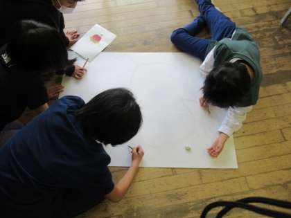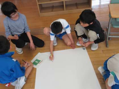今年度の山田っ子のめあてのキャラクターづくりが始まりました。5,6年生が協力して作成しています。仕上がりが楽しみです。