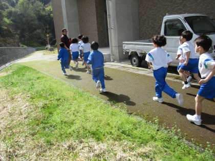 今年度初めての避難訓練は、学級ごとに行いました。2・3年生の行動は、1年生のお手本です。