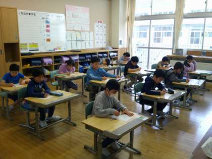 算数の単元「大きな数のしくみ」がそろそろ終わりそうなので、演習プリントに取り組みました。それぞれ自分のペースで集中して頑張っていました。「わからない!」「むずかしい!」という仲間の声が聞こえるとすぐに行って一緒に考える、やさしい4年生です。
