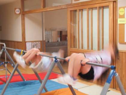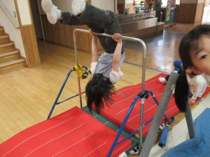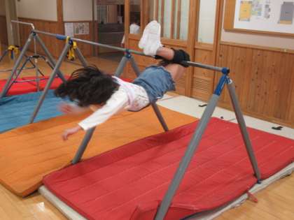 今日も鉄棒の技を楽しむ子供たちが集まってきます。