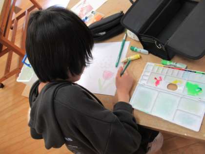 山田の春を描いています。丁寧に仕上げようと取り組んでいます。仕上がりが楽しみですね。