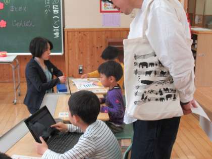 授業の後半では、昨日から使い始めた端末を用いて活動しました。
