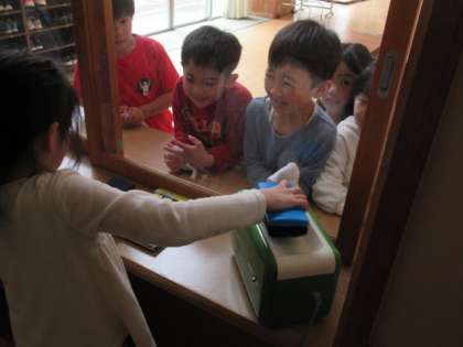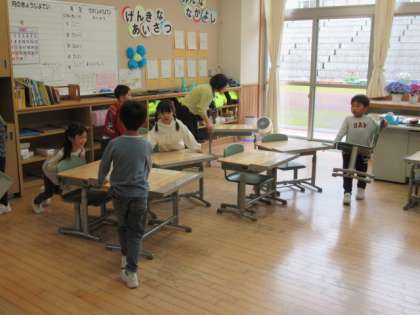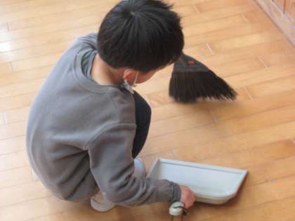 1年生の子供たちも、しっかり掃除をしています。自分たちの使う教室をきちんと整えていました。ただ、黒板消しクリーナーの音がすると、そっちに引き寄せられていました。