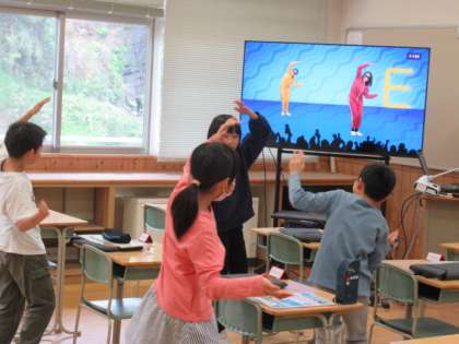 音と映像に合わせて、体を使ってアルファベットを表現しました。