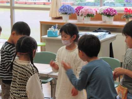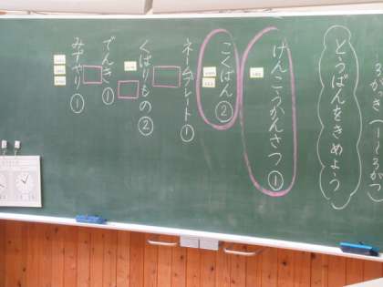教室の仕事の担当を決めました。自分のできることを考えて選んでいます。