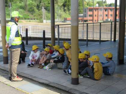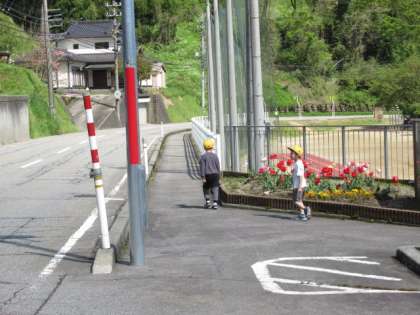 低学年の子供たちは、道路の歩き方を確認しました。子供たちの中には、押しボタン信号機のボタンを初めて押したという子供もいました。自分の目と耳で、しっかり安全を確かめて歩きましょうね。