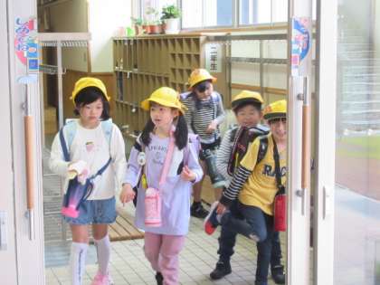 2,3年生の子供たちが帰って行きます。今日も一日、元気に過ごしました。気を付けて帰りましょう。