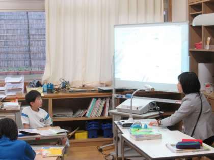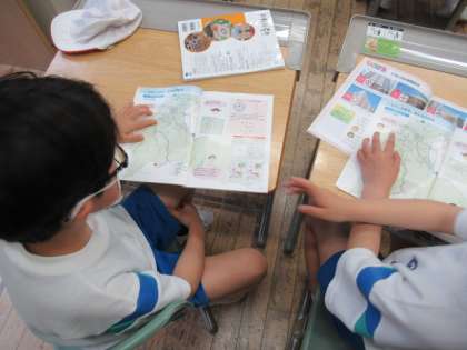 富山市の地図を使って、学校の場所を探しました。地図等の資料の中には、手がかりがいっぱい。見つけることはできたかな。