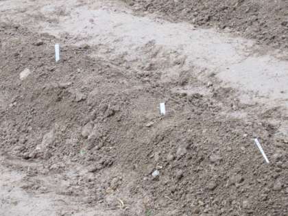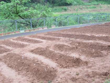 ジャガイモを植えた畑が、降る雨に喜んでいるようです。いつ芽が出てくるかな。子供たちが楽しみにしています。