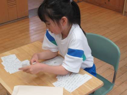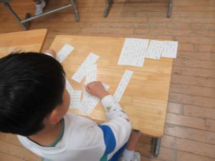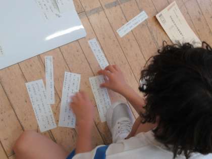 段落ごとに切り分けた文章を、内容を確かめながら並べ替えています。