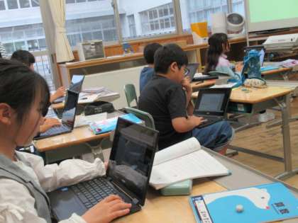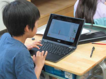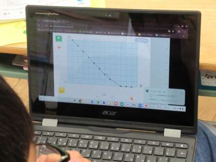 縦軸と横軸の値を考え、表を整理しながら折れ線グラフや棒グラフをつくりました。端末を使うと簡単につくることができました。