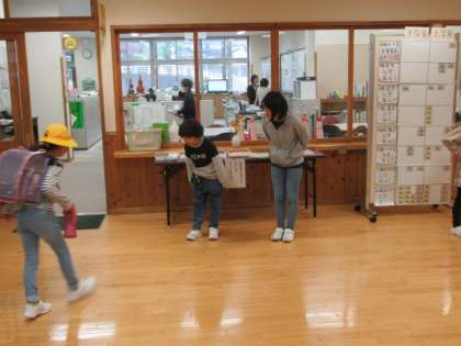 毎日、あいさつ運動に取り組んでいます。高学年の頑張る姿を見て、下級生も参加し始めました。良い姿が広がっていきます。