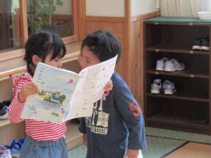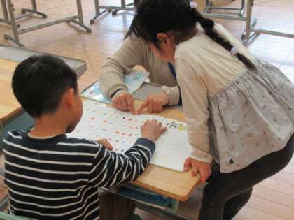 国語の時間の始まりには、音読に取り組みます。今日は、五十音をすらすら言えるように挑戦しました。教科書を確かめて読む子供。もう覚えて、リズムにのって言う子供。それぞれの取組が充実しています。