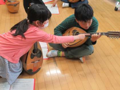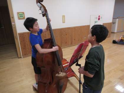 上級生から下級生に、演奏の仕方や、上手く演奏するためのコツが伝えられます。