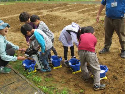 畑に苗を植えました。植木鉢でミニトマトを育てる準備もできました。これから、どんどん育っていくのが楽しみですね。