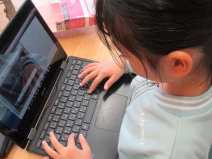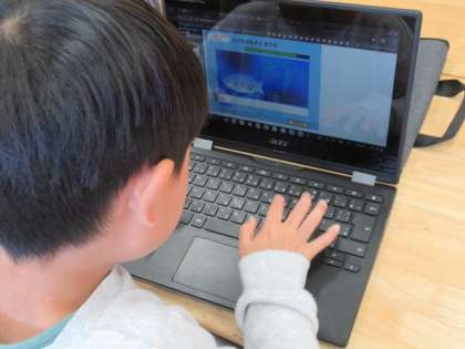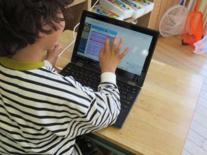 昨年度から端末に入力するための練習として、タイピングに取り組んでいます。2年生は、昨年からの積み重ねもあり、スムーズに入力していました。