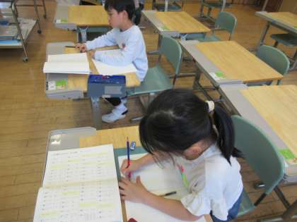 書写の時間に、同じ部分をもつ漢字を書きました。丁寧に取り組んでいます。
