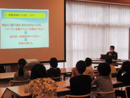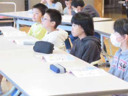 今日は、消防署員の方に来ていただき、BFCバッジ授与式と防火教室を行いました。毎日の生活の中で、自分たちの命を守ることの大切さや、防火、防災への意識を高めておくことの大切さについて学びました。