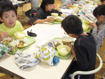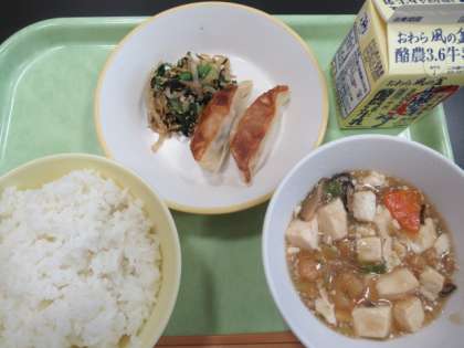 今日の献立です。子供たちには、餃子が人気でした。今日もたくさん食べました。